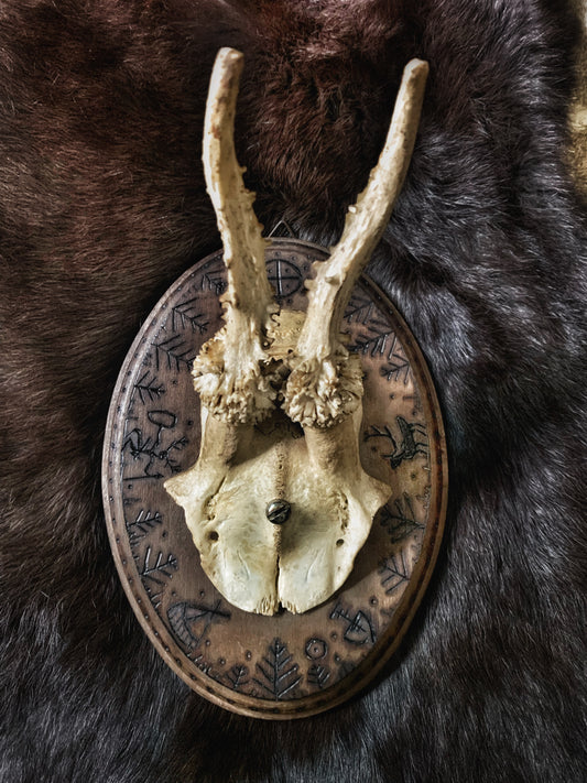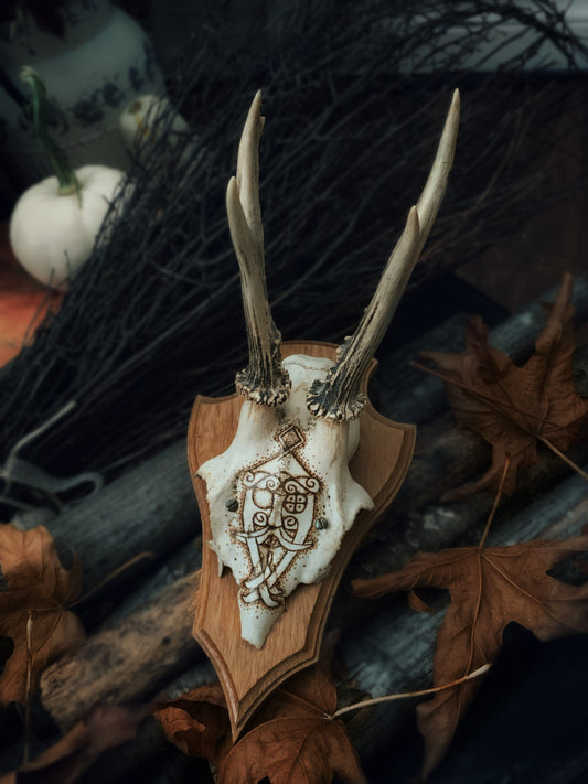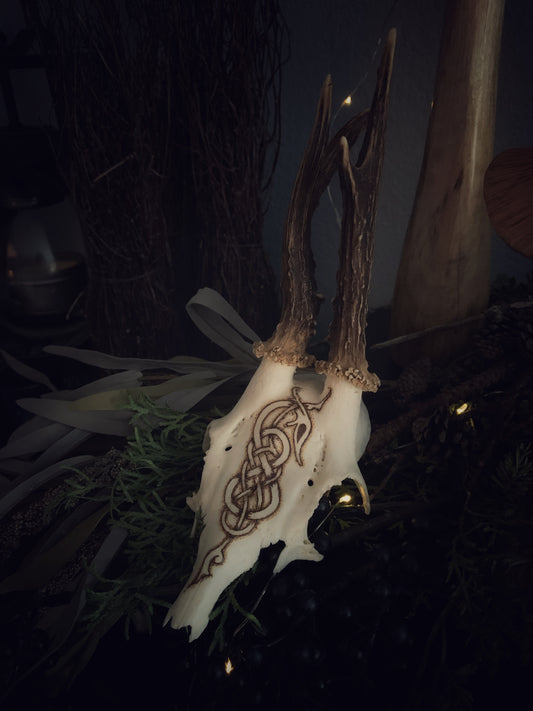 Sold outUrnes Wyrm Deer Antler Partial Skull